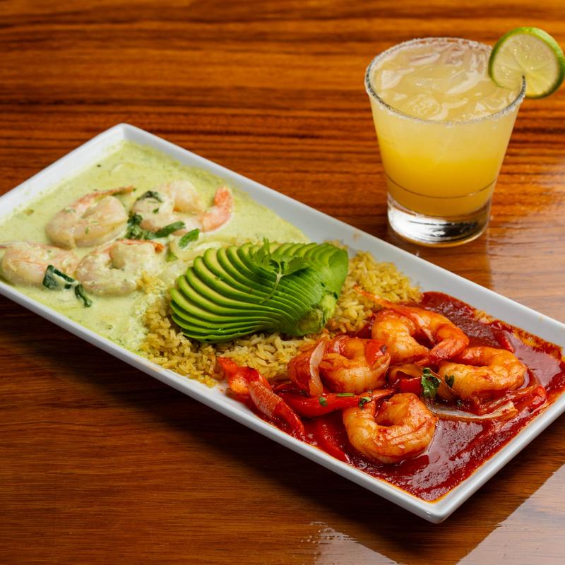 Sauteed jumbo shrimp with poblano cream sauce, honey glazed diablo sauce, served with cilantro rice avocado slices, & red onions.